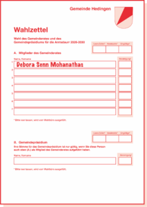 2. Füllen Sie den Wahlzettel für den Gemeinderat aus.