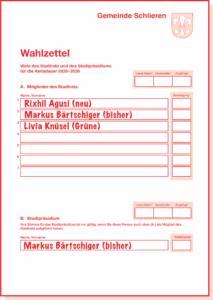3. Füllen Sie den Wahlzettel für den Stadtrat aus.